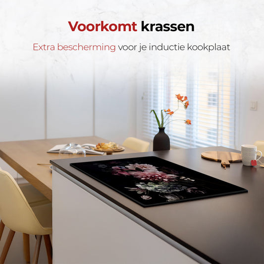 • Inductie beschermer bloemen op de inductie kookplaat in de keuken