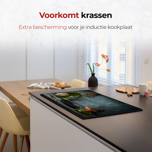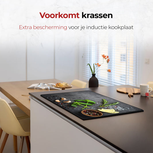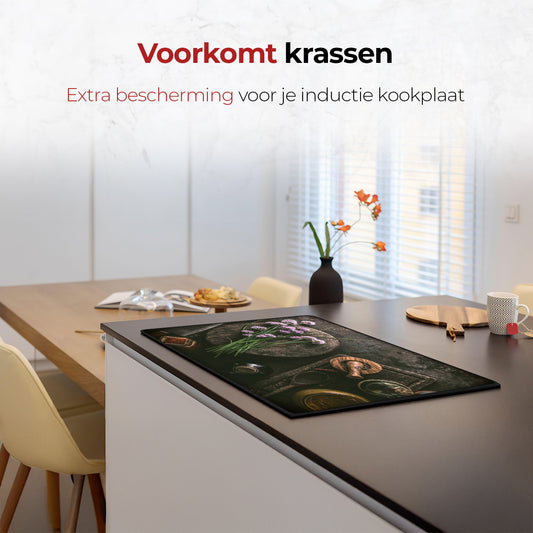 • Inductie beschermer bloemen op de inductie kookplaat in de keuken